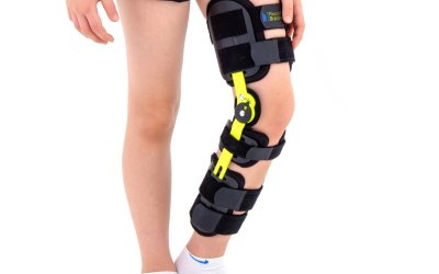 Uniwersalna dziecięca orteza kolana z regulacją długości.